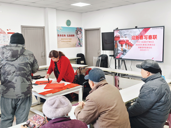此次活動(dòng)特別邀請到江蘇省揚(yáng)子書畫學(xué)會(huì)副會(huì)長、中國當(dāng)代藝術(shù)家協(xié)會(huì)書法培訓(xùn)中心教授趙瑞老師親臨現(xiàn)場書寫福字、春聯(lián),為大家送福添彩。活動(dòng)當(dāng)天,社區(qū)活動(dòng)室內(nèi)墨香四溢。趙瑞老師揮毫潑墨,筆鋒游走間,一個(gè)個(gè)蒼勁有力的“?!弊周S然紙上,每一筆都飽含著對老年朋友們的美好期許。