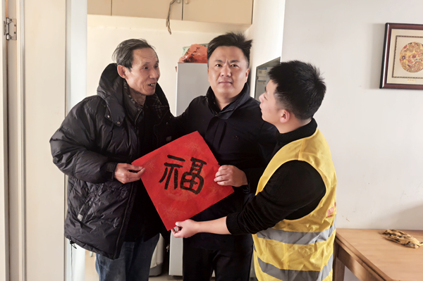 考慮到社區(qū)里行動(dòng)不便的孤寡困難老人,志愿者們主動(dòng)將“?!弊炙蜕祥T。每到一戶,老人們都熱情相迎,臉上綻放出幸福的笑容。志愿者們細(xì)心地把福字貼在老人家中顯眼位置,還陪著老人嘮家常,關(guān)切詢問他們的生活情況與身體狀況。老人們望著貼好的福字,贊不絕口:“這福字寫得太棒了,看著就喜氣洋洋,多謝你們惦記著我們,讓我們提前感受到了新年的熱鬧?!?/span>